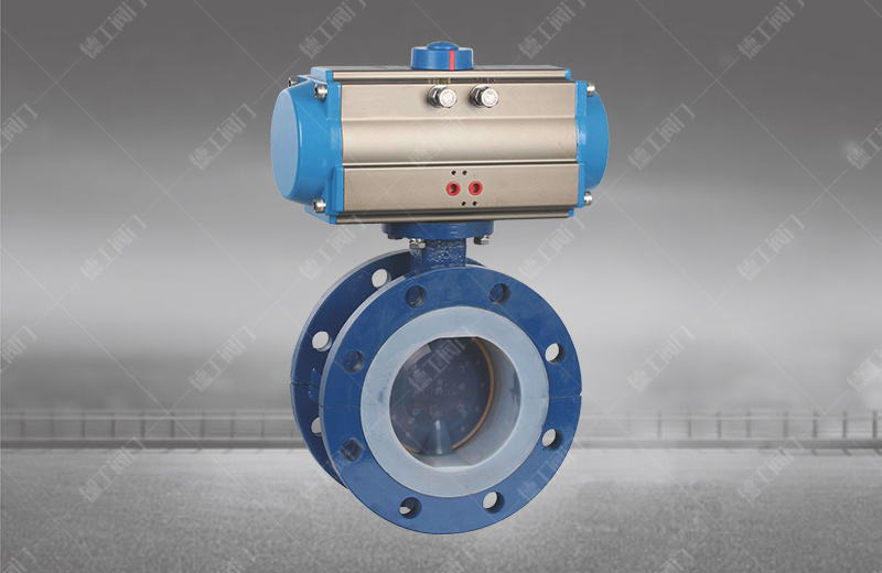 气动衬氟蝶阀采用带有球形密封表面的衬聚四氟乙烯包衬蝶板,气动衬氟蝶阀操作轻便,严密的密封性能,延长了使用寿命;可作快速切断或调节流量之用。气动衬四氟蝶阀适用于要求可靠密封和良好调节特性的场合。阀体采用分体式,阀轴两端的密封由蝶板与阀座之间的旋转基面加氟橡胶来控制;保证阀轴不与腔内流体介质接触。气动衬四氟蝶阀广泛适用于各种不同类型工业管道中液体和气体(包括蒸气)的输送,有严重腐蚀性介质的使用场合,如:硫酸、氢氟酸、磷酸、氯气、强碱、王水等具有强腐蚀性的介质。